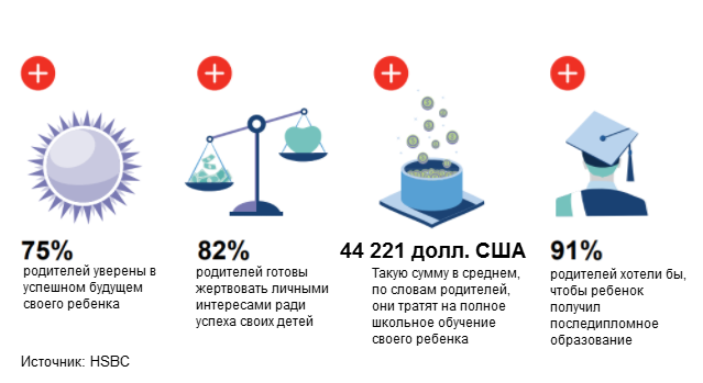 Для большинства родителей вложение средств в образование занимает одно из первых мест по важности: 87% родителей по всему миру помогают финансировать обучение своих детей.